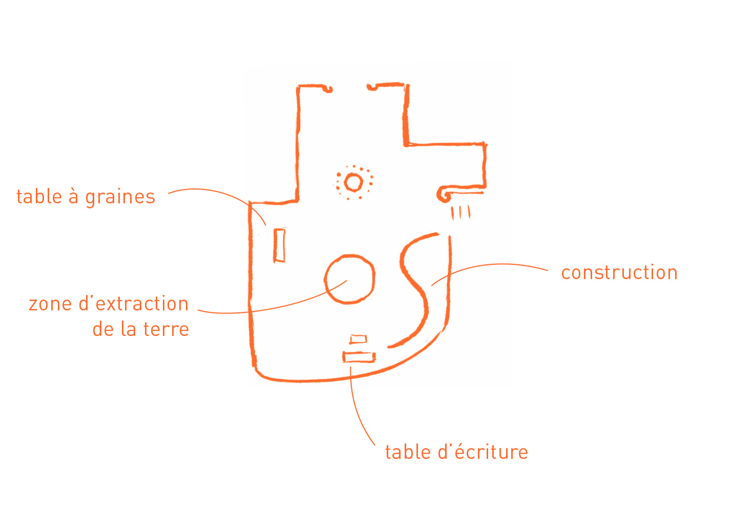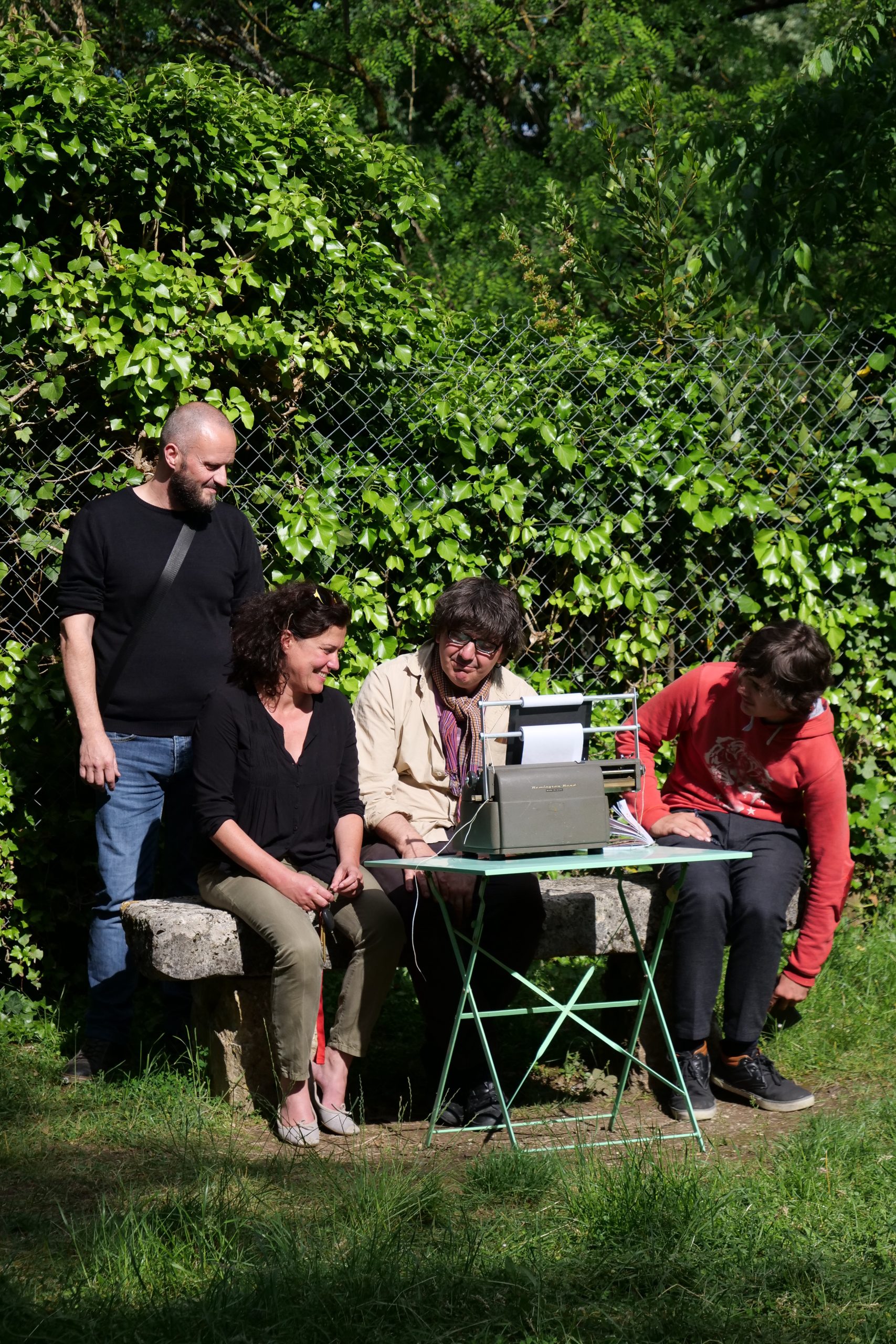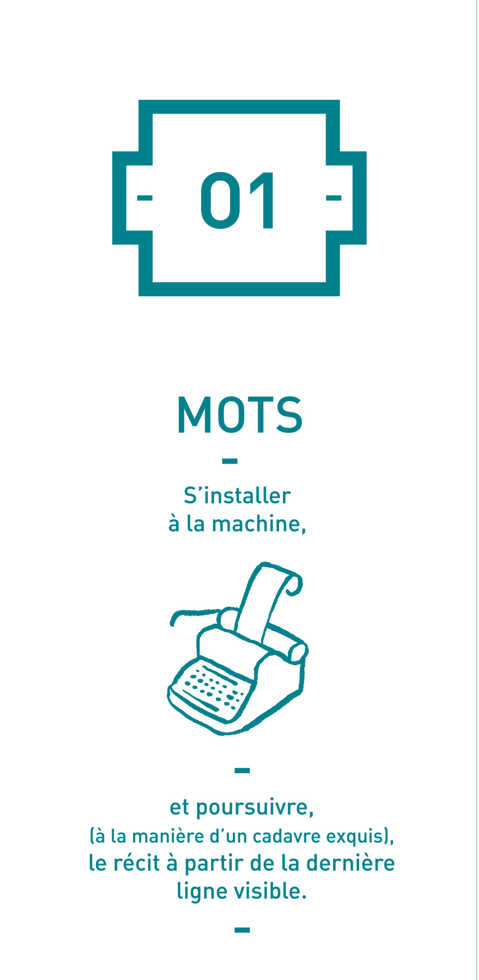 Un cabinet d’écriture y est disposé où chacun est invité à construire un récit collectif sur le principe du cadavre exquis.